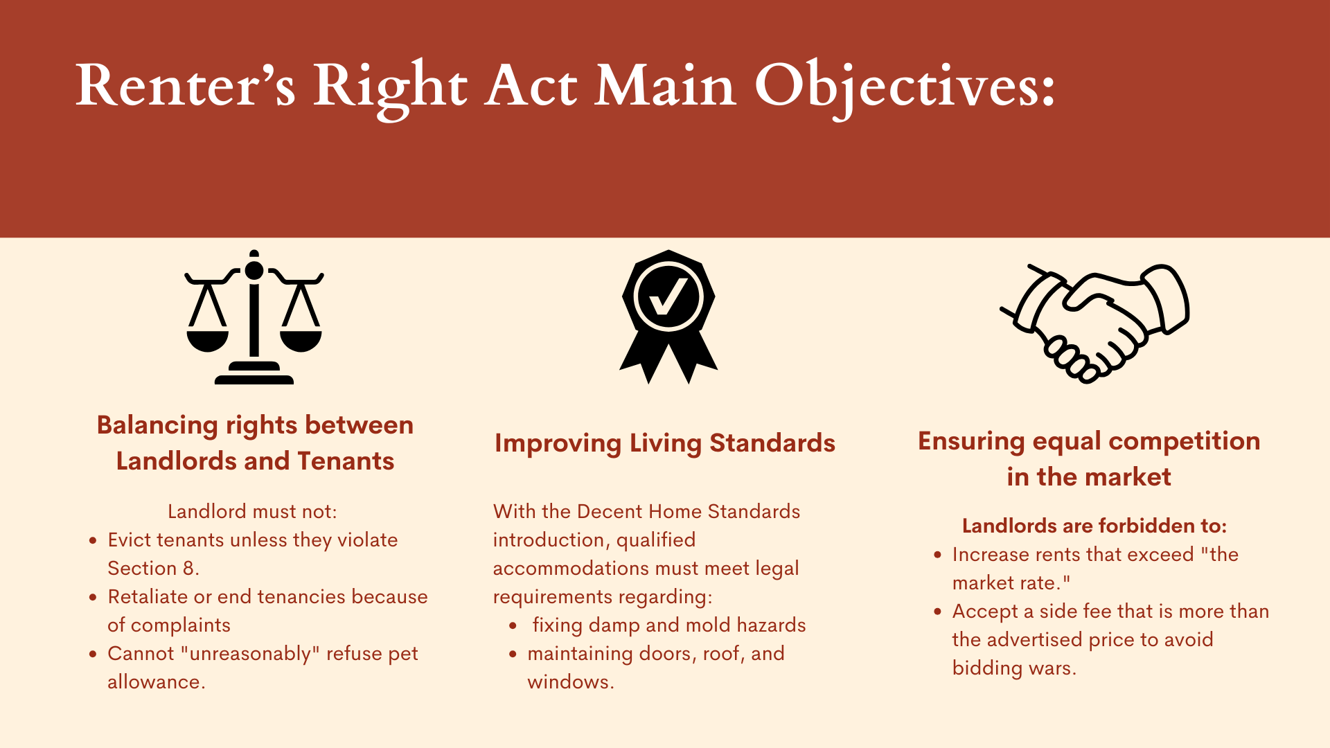 - Balancing rights: The Act aims to strike a balance between tenants and landlords by introducing clear tenancy enforcement rules, ensuring fairness and transparency.